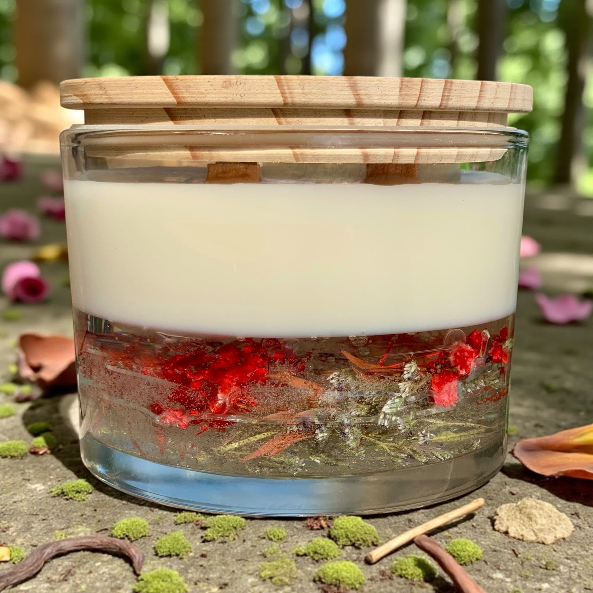 Crafted from thick, crystal-clear glass, the Terra Vessel is designed to showcase the natural elements layered at the base of each candle—stones, petals, moss, and more. Its clean silhouette feels modern, yet timeless, with a weight that adds a sense of presence wherever it rests.