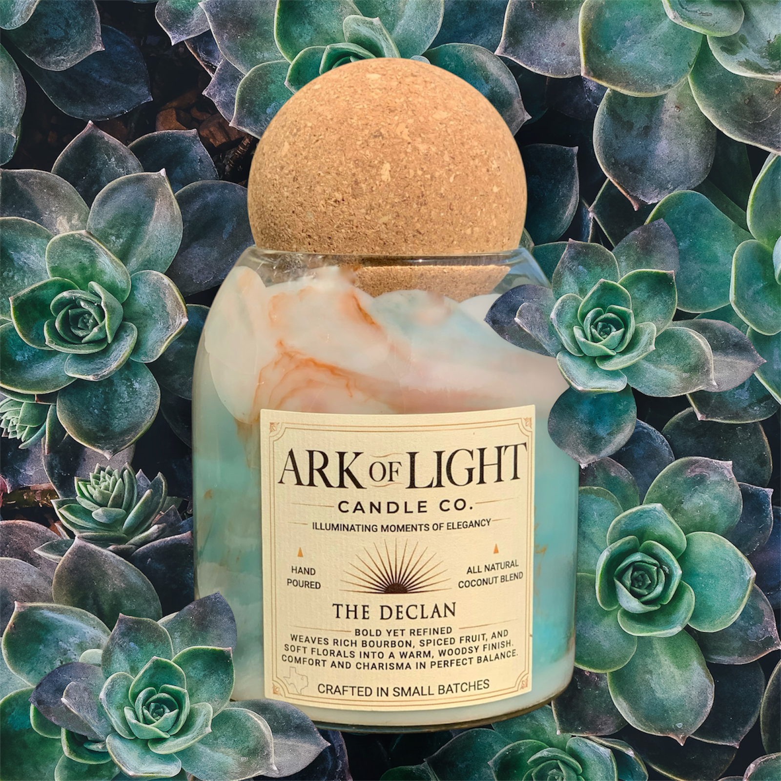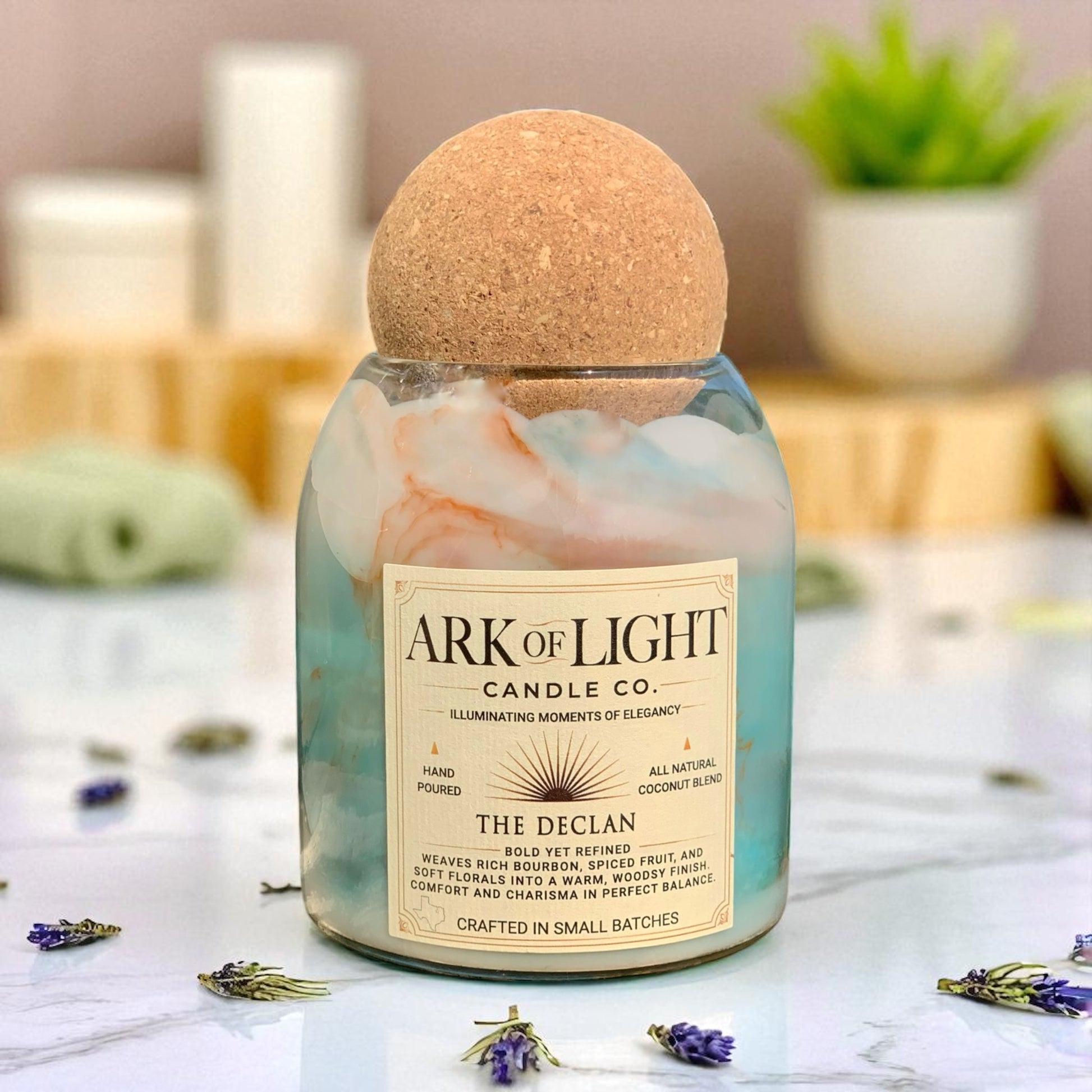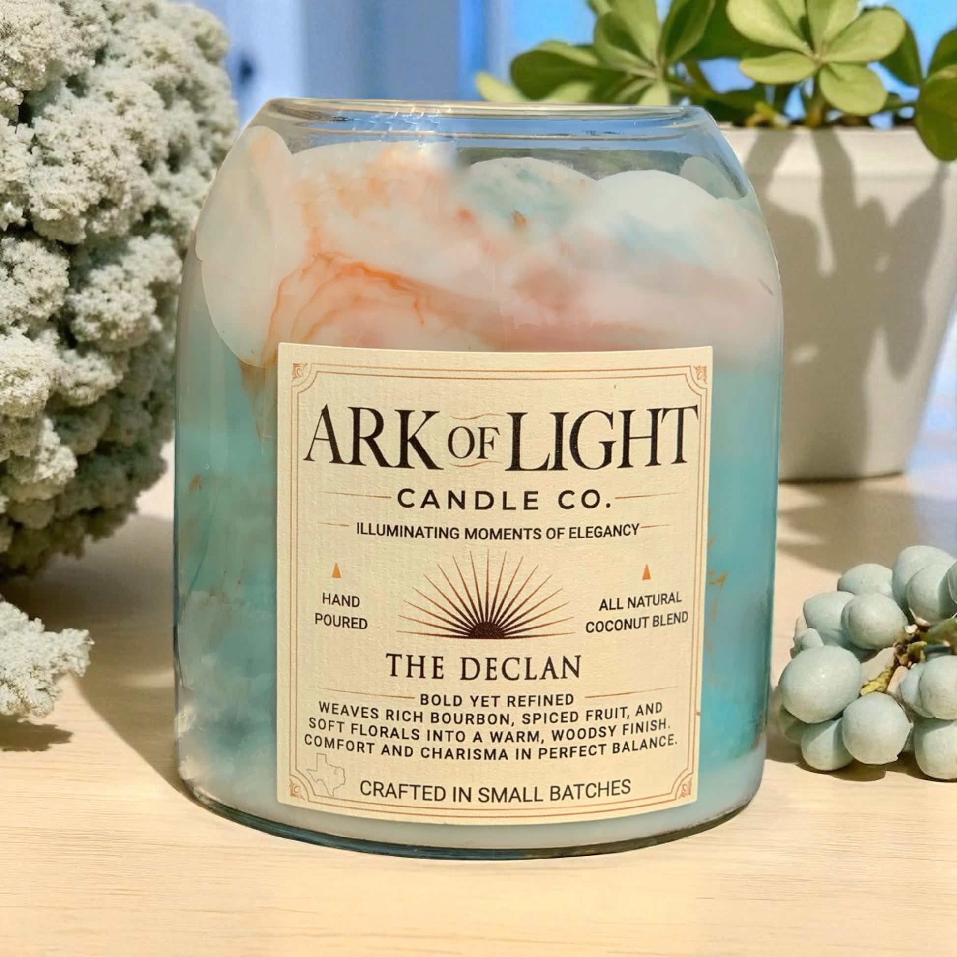 Each candle is hand-poured in Texas with premium fragrance oils and natural wax blends.